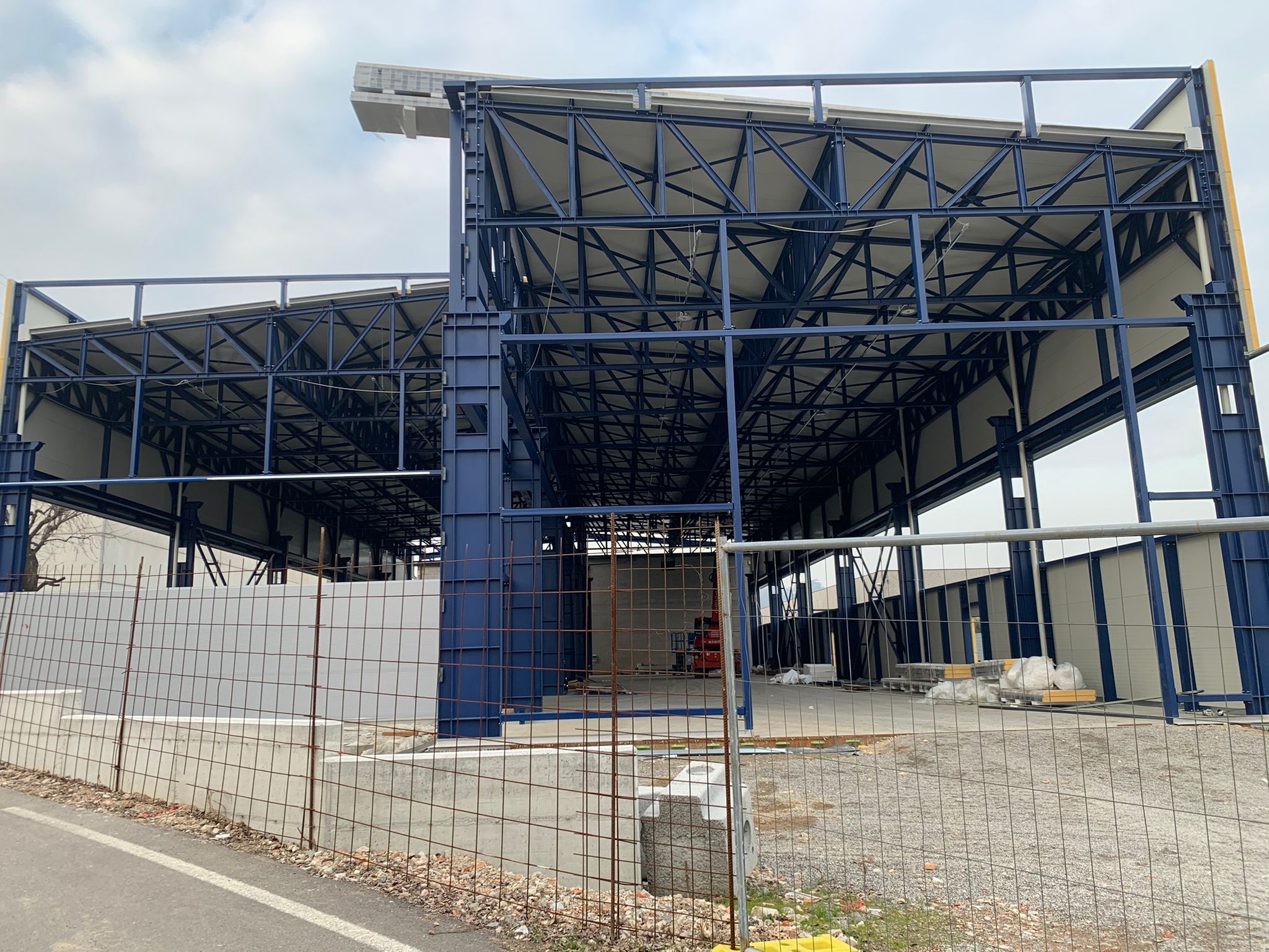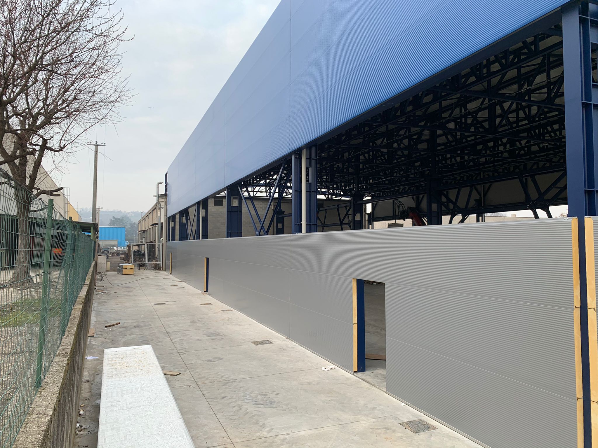 - Efficienza e Isolamento: Per la realizzazione di baraccatura e copertura sono stati utilizzati pannelli sandwich, offrendo un montaggio rapido e un elevato isolamento termico e acustico per ottimizzare l'ambiente di lavoro.