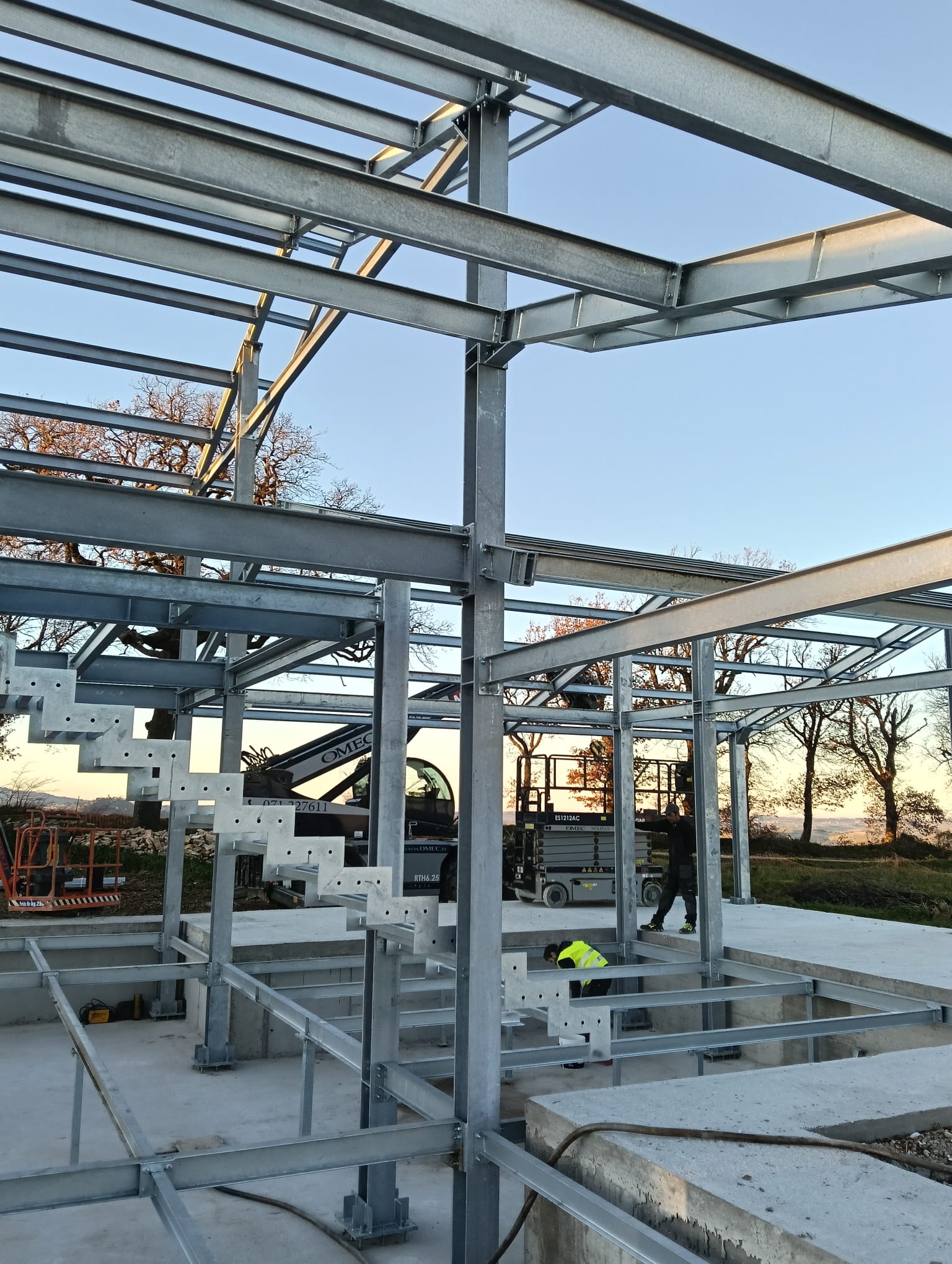 - Struttura in acciaio: resistenza superiore, leggerezza e tempi di costruzione ridotti rispetto alle costruzioni tradizionali.
